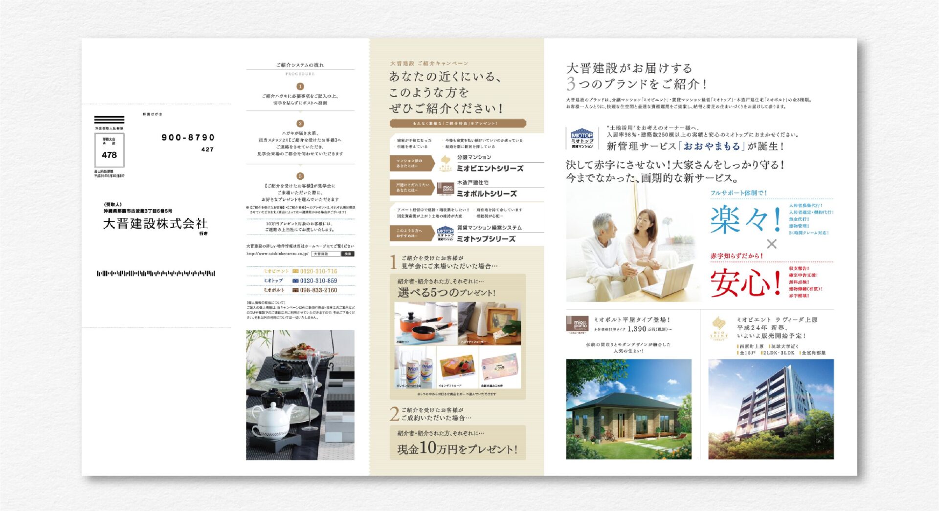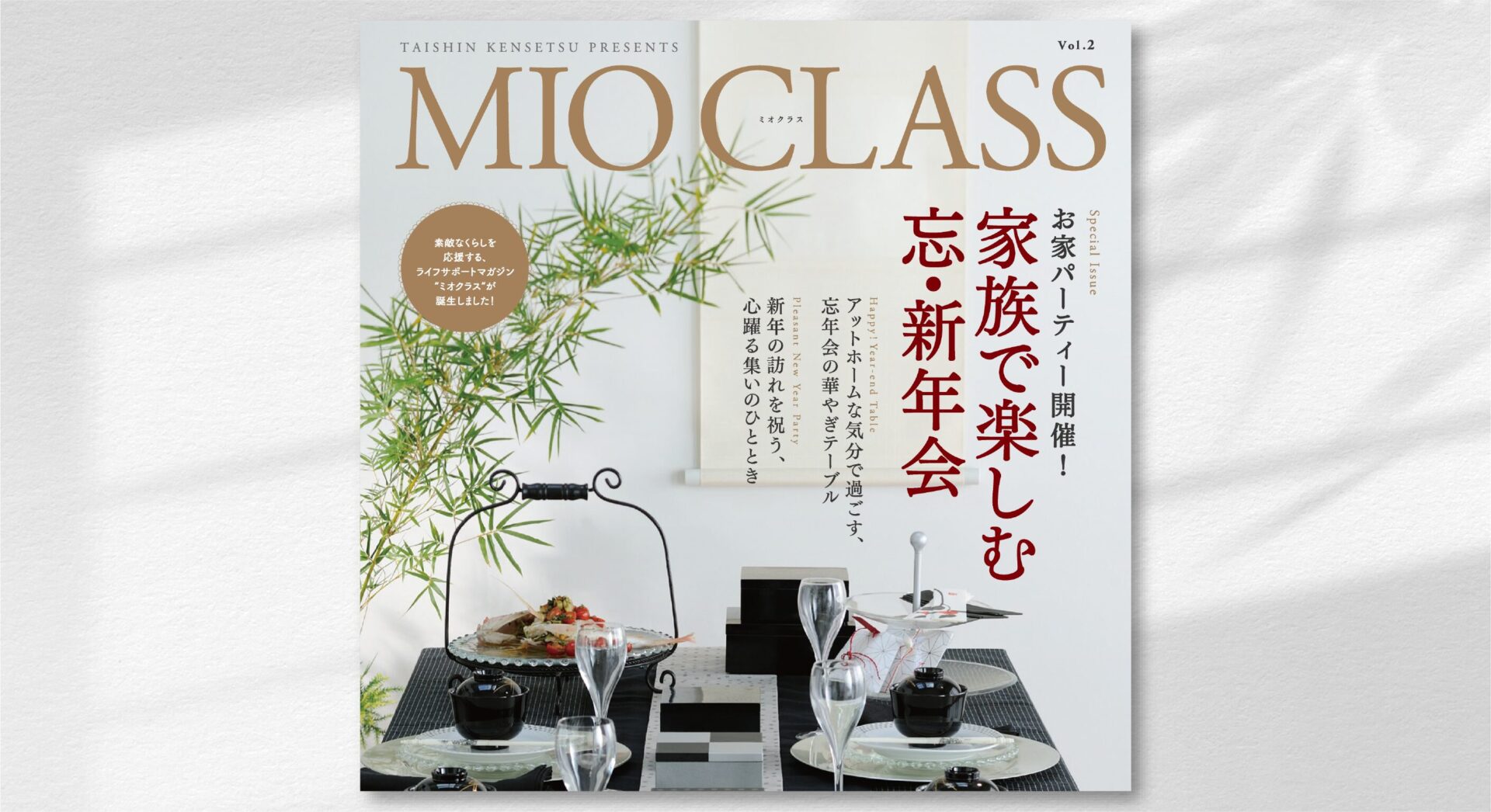 老舗の総合建築会社、大晋建設(株)様が顧客向けに配布したライフスタイル誌「MIO CLASS(ミオ クラス)」(vol.1〜2)の企画・制作を担当しました。フードコーディネーターによるテーブルコーディネートやホームパーティーのメニュー、ホームデコレーションなど、毎日の暮らしに豊かさをプラスする多彩なアイディアを掲載しました。▼業務内容(1)ライフスタイル誌「MIO CLASS(ミオ クラス)」企画・制作 ①パンフレット ②撮影・ディレクション ③コピーライティング